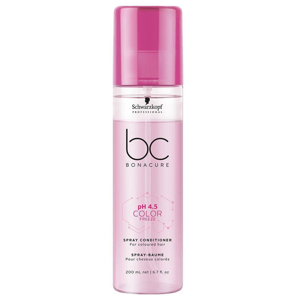 Schwarzkopf Bonacure Color Freeze Spray Conditioner is een verzorgende leave in spray voor gekleurd haar. Voedende ingrediÌÇnten vullen structurele gaten op in de buitenste laag van het haar en verbeteren de elasticiteit en sterkte van gekleurd haar. Het haar wordt op het optimale pH-niveau van 4.5 gebracht, om te voorkomen dat de kleur vervaagt. Schwarzkopf Bonacure Color Freeze Spray Conditioner zorgt voor tot 90% kleurbehoud en 100% meer glans.