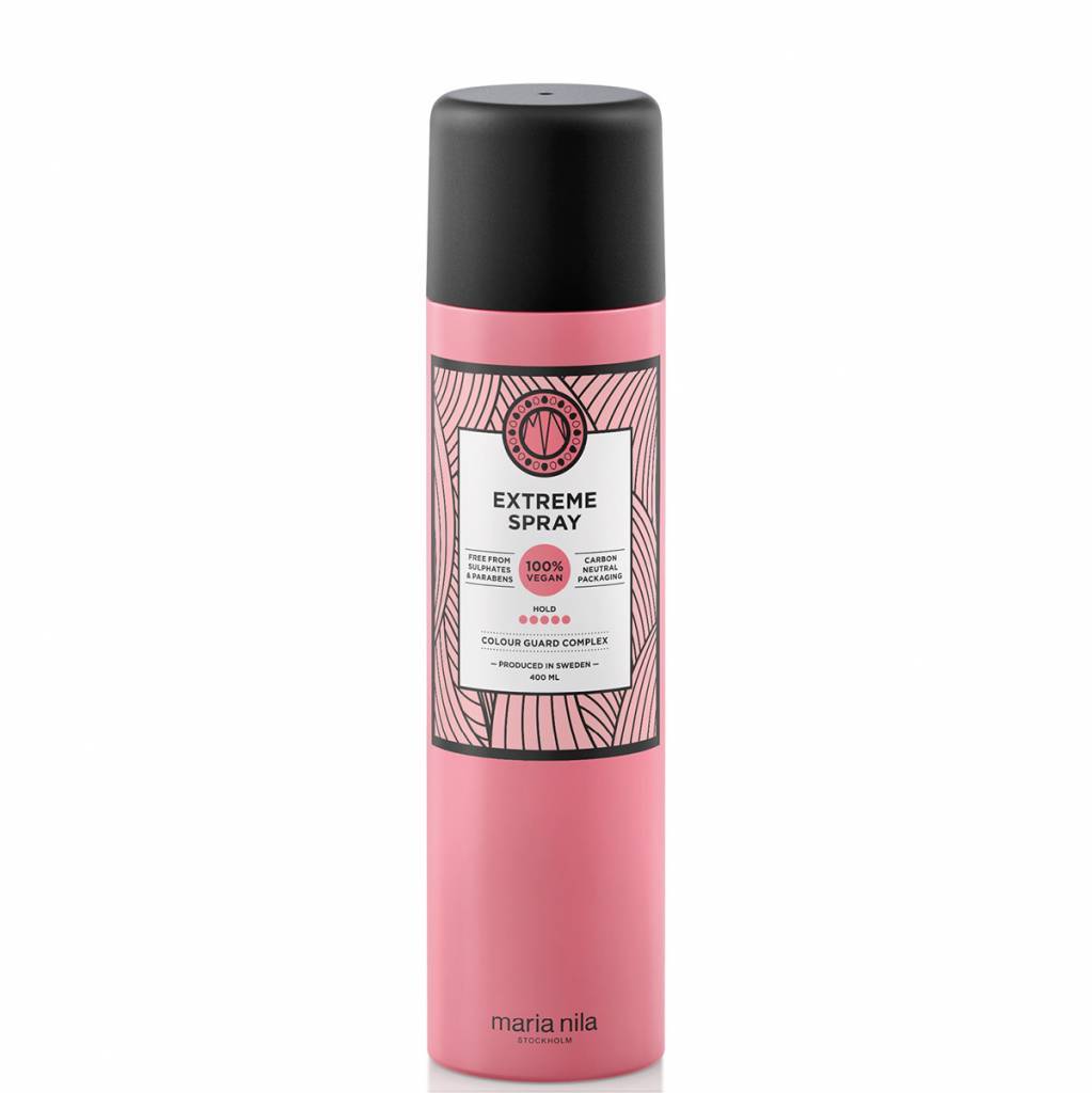 De Maria Nila Extreme Spray is een spray die extra stabiliteit aan het haar geeft.åÊ De Extreme spray heeft een goede hold, zodat het haar mooi in model blijft. De spray beschermt het haar tegen UV-stralen. De Maria Nila Extreme Spray bevat 100% plantaardige ingrediÌÇnten en bevat geen parabenen en sulfaten.