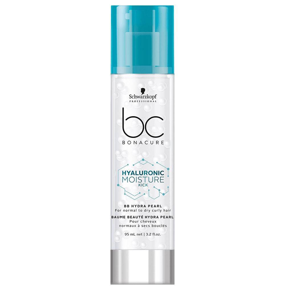Schwarzkopf Bonacure Hyaluronic Moisture Kick BB Hydra Pearl is een balm die beschadigd haar tegen de hitte van stylingtools beschermt.åÊDe gelmatrix met hyaluronzuurderivaat zorgt dat het vochtgehalte van het haar in balans wordt gebracht, terwijl de parels Glycerine bevatten voor een prachtige glans.åÊHet herstelt normaal tot droog of krullend haar op celniveau voor een glanzend eindresultaat.åÊ