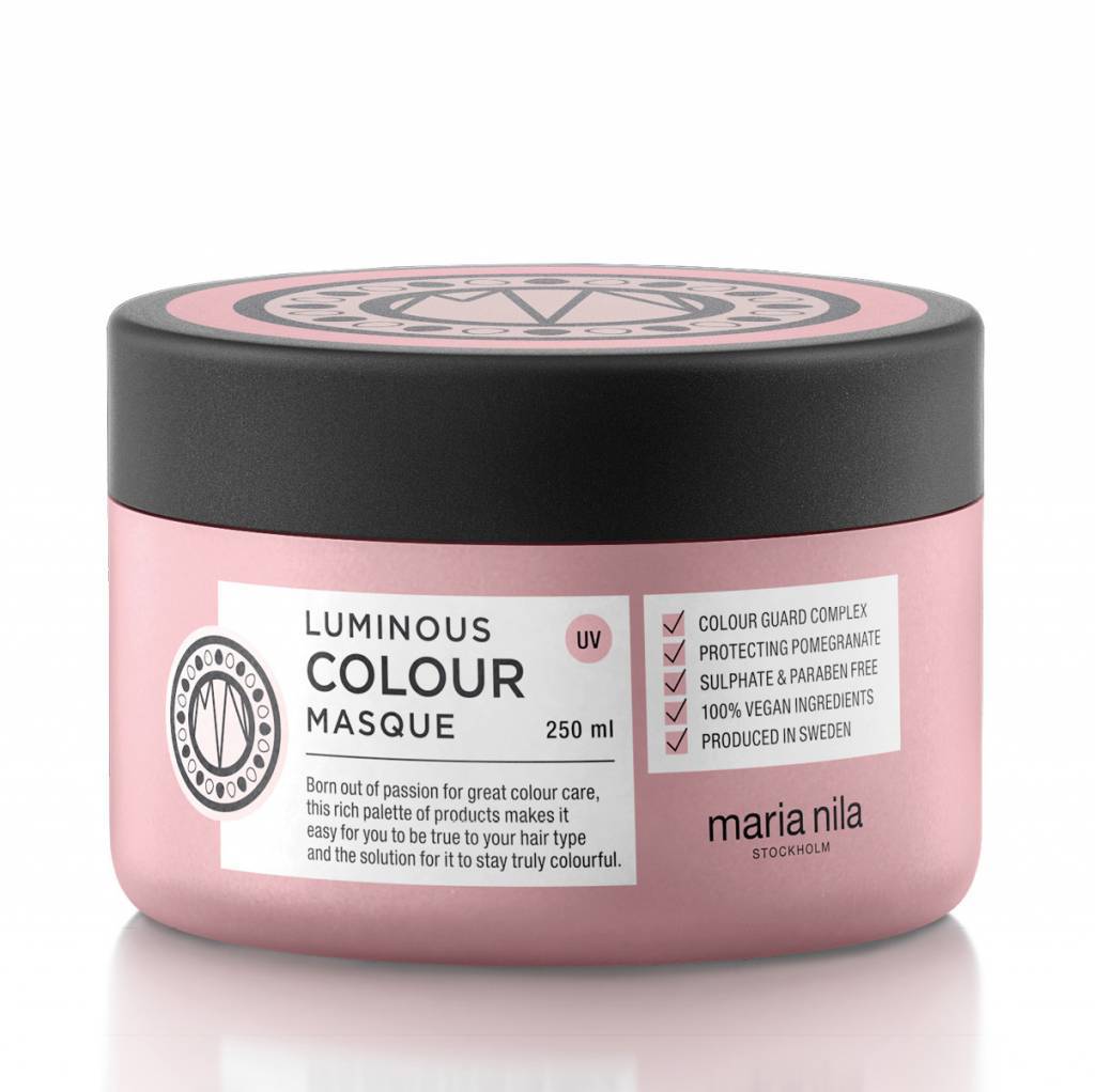 Maria Nila Palett Luminous Colour Mask is een heerlijk masker voor gekleurd haar, die het haar versterkt, het haar zijdezacht maakt, het meer laat glanzen en statisch haar voorkomt. Het masker bevat granaatappel extract, dit houdt kleurvermindering tegen. Maria Nila Palett Luminous Colour Masque bestaat voor 100% uit plantaardige stoffen. Dit masker is vrij van SLS, sulfaten en parabenen.